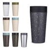 Practicality meets sustainability in our travel mug, boasting a leakproof design with a secure locking lid mechanism. Whether you're commuting or traveling, enjoy peace of mind with every sip. The unique push lid minimizes spills and allows for convenient one-hand opening, while the 360-degree drinking feature enhances your coffee experience.